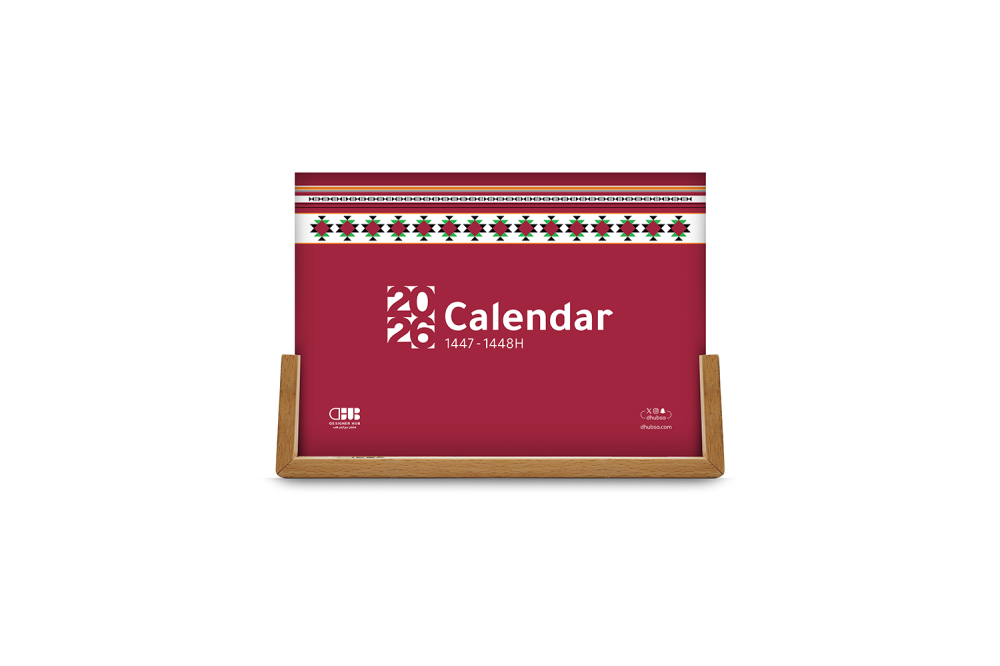 تقويم خشبي 2026 بتصميم السدو الأحمر
