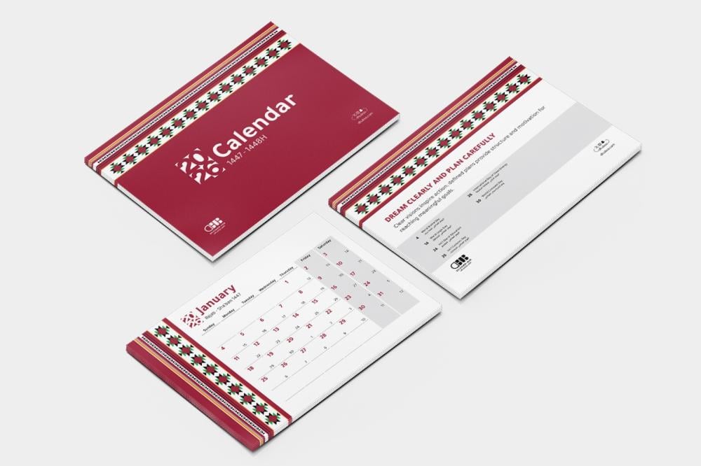 بطاقات التقويم الميلادي 2026 | تصميم السدو الأحمر