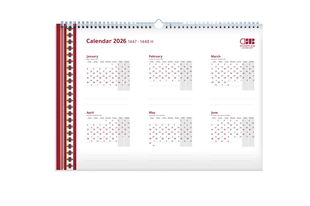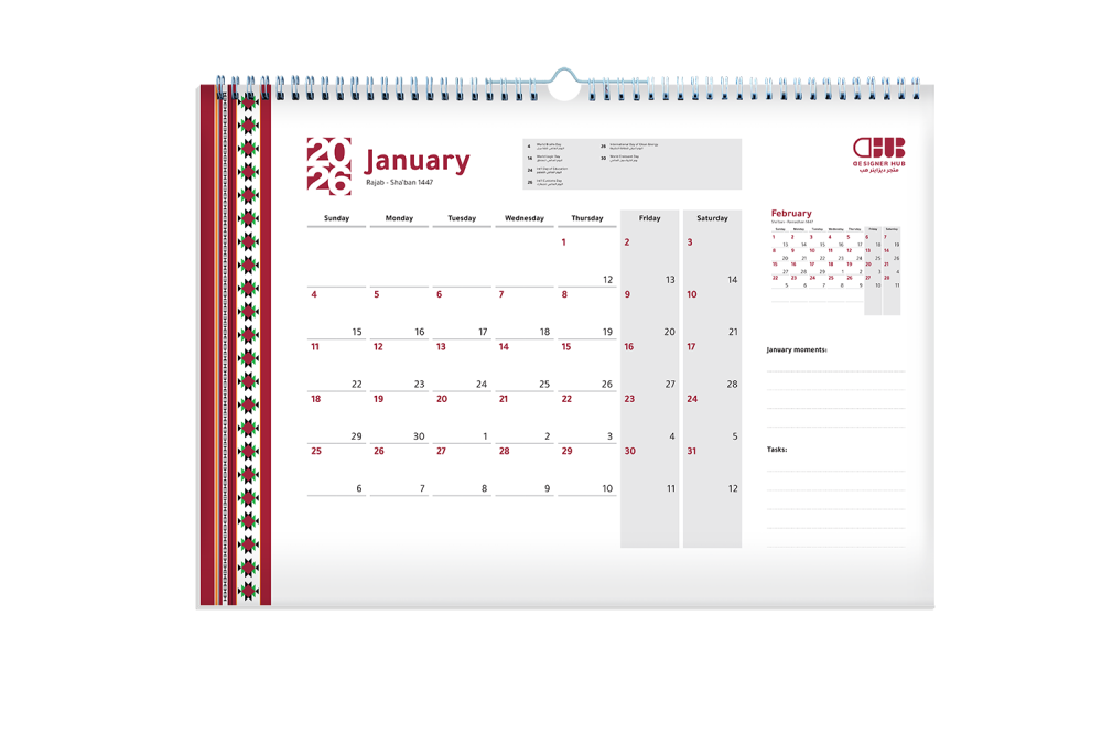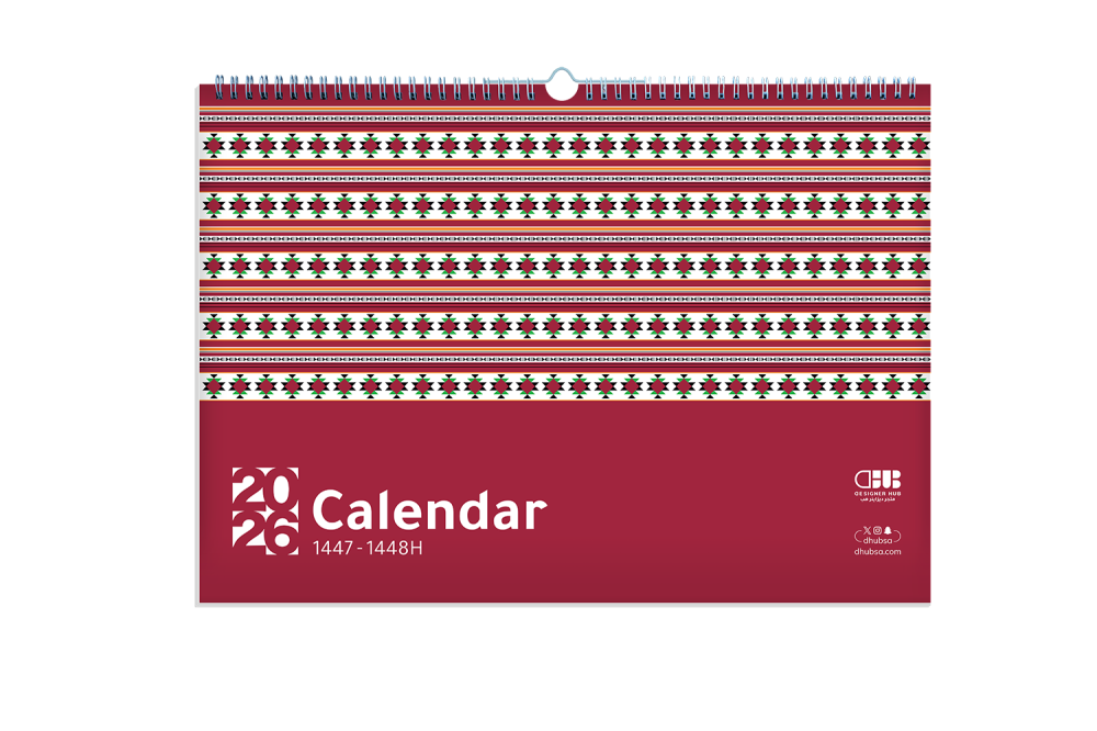 تقويم جداري 2026م بتصميم السدو الأحمر